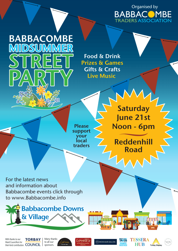 TorquayBabbacombe Midsummer Street PartyBabbacombe Midsummer Street Party Neil and Amanda from our Babbacombe office will be attending to support this local event ☀️ Babbacombe Midsummer Street PartySaturday 21st June 2025Noon – 6pmReddenhill Road