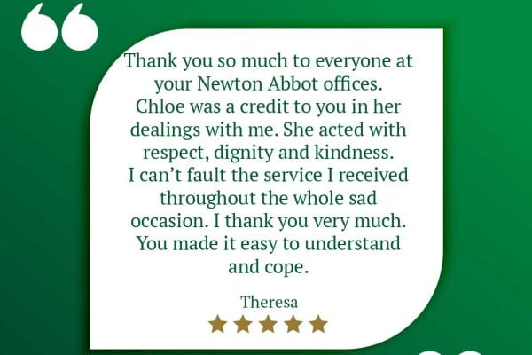 We are deeply grateful for Juliet’s kind words to our Funeral Director Claire Faithfull at our Crownhill branch….